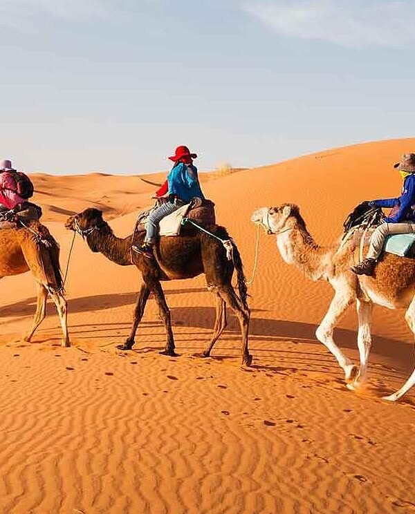 You will ride camels in Merzouga desert, overnight in desert camp.