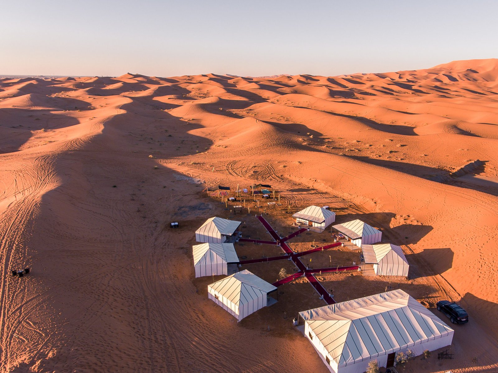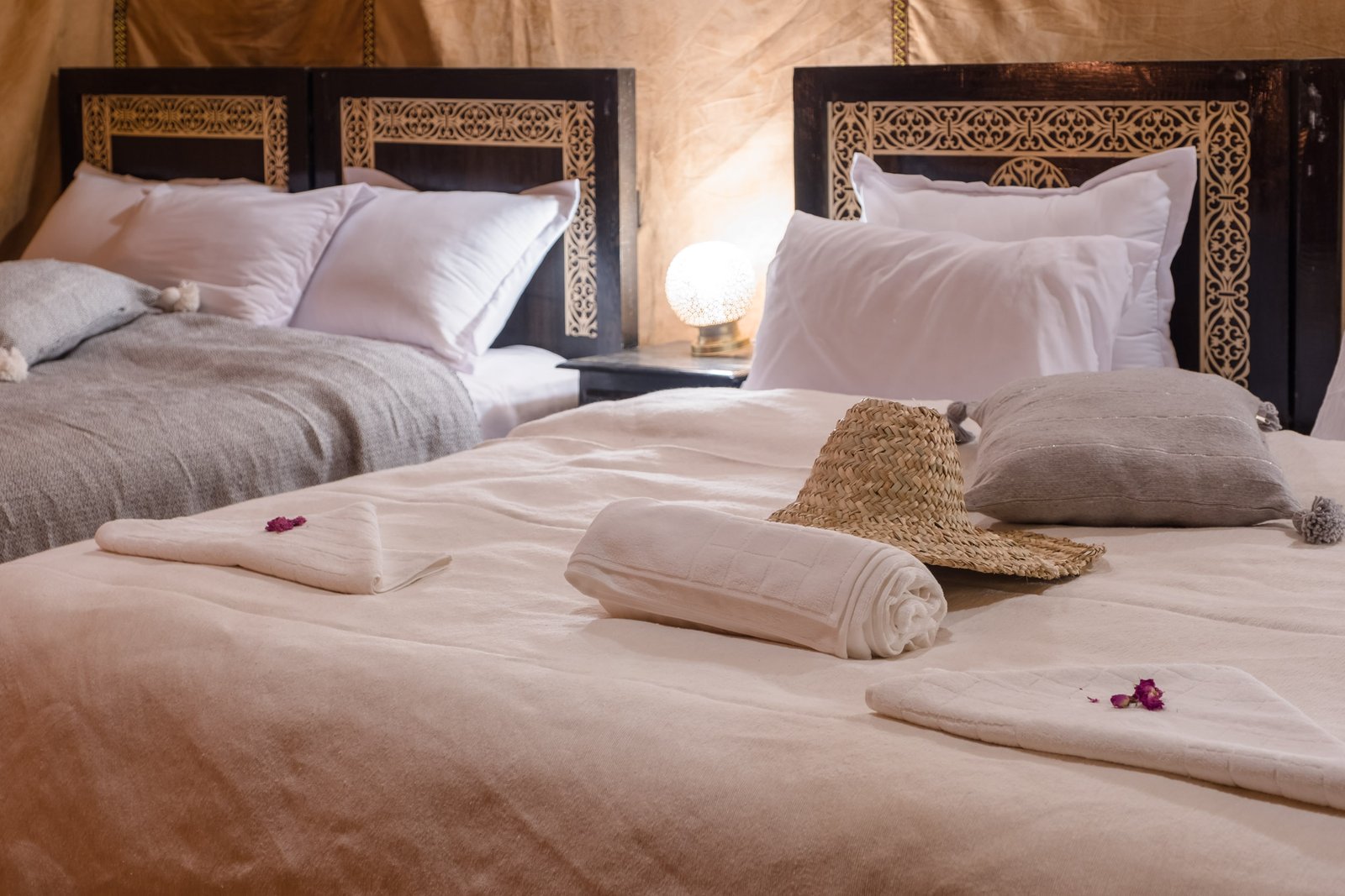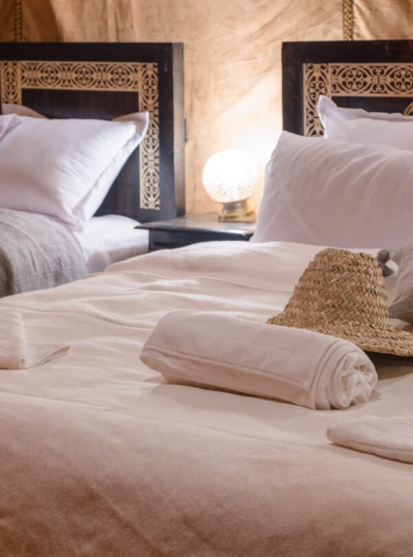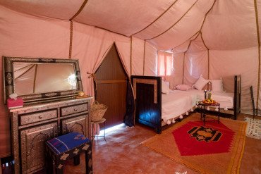 Experience luxurious 5 stars tents in Luxury Camp Merzouga. Our camp consists of 10 private deluxe tents, each tent is designed with your comfort in mind, they are all luxurious and well equipped with everything you need to spend your most exquisite and unique experience and holiday: